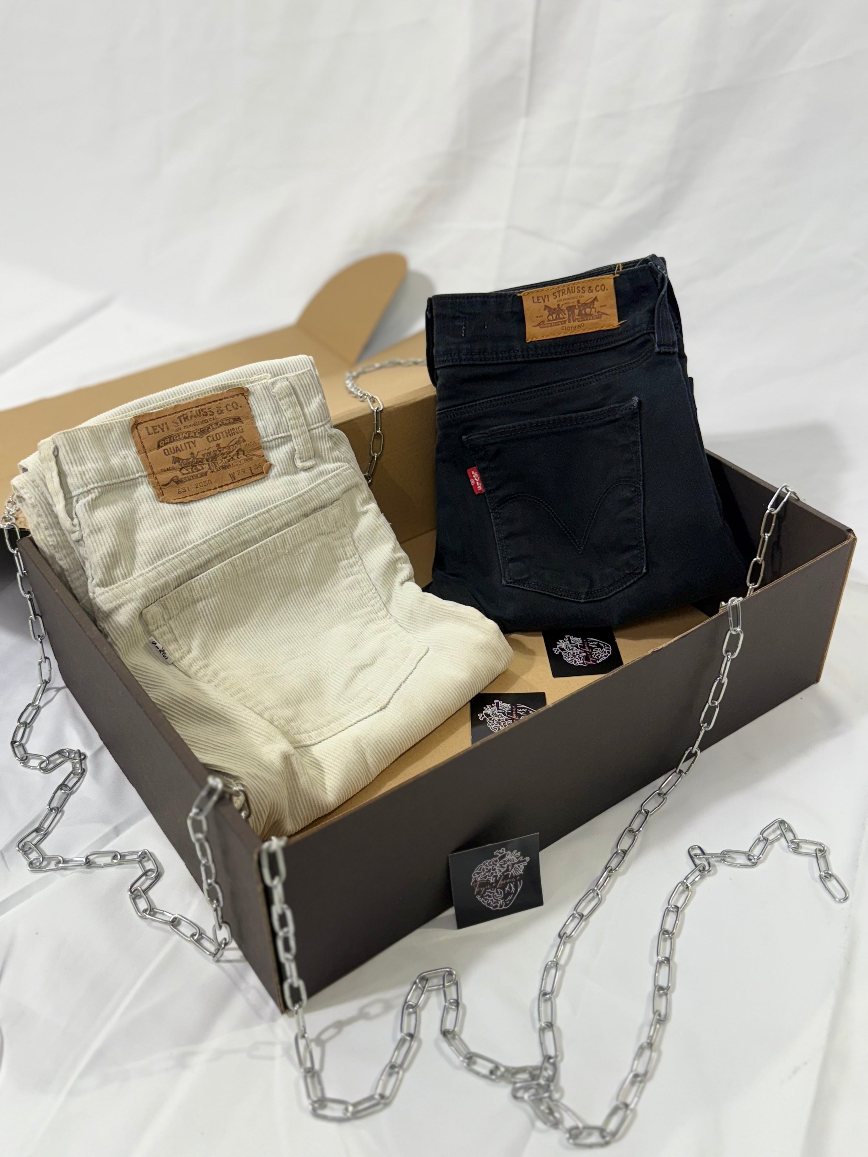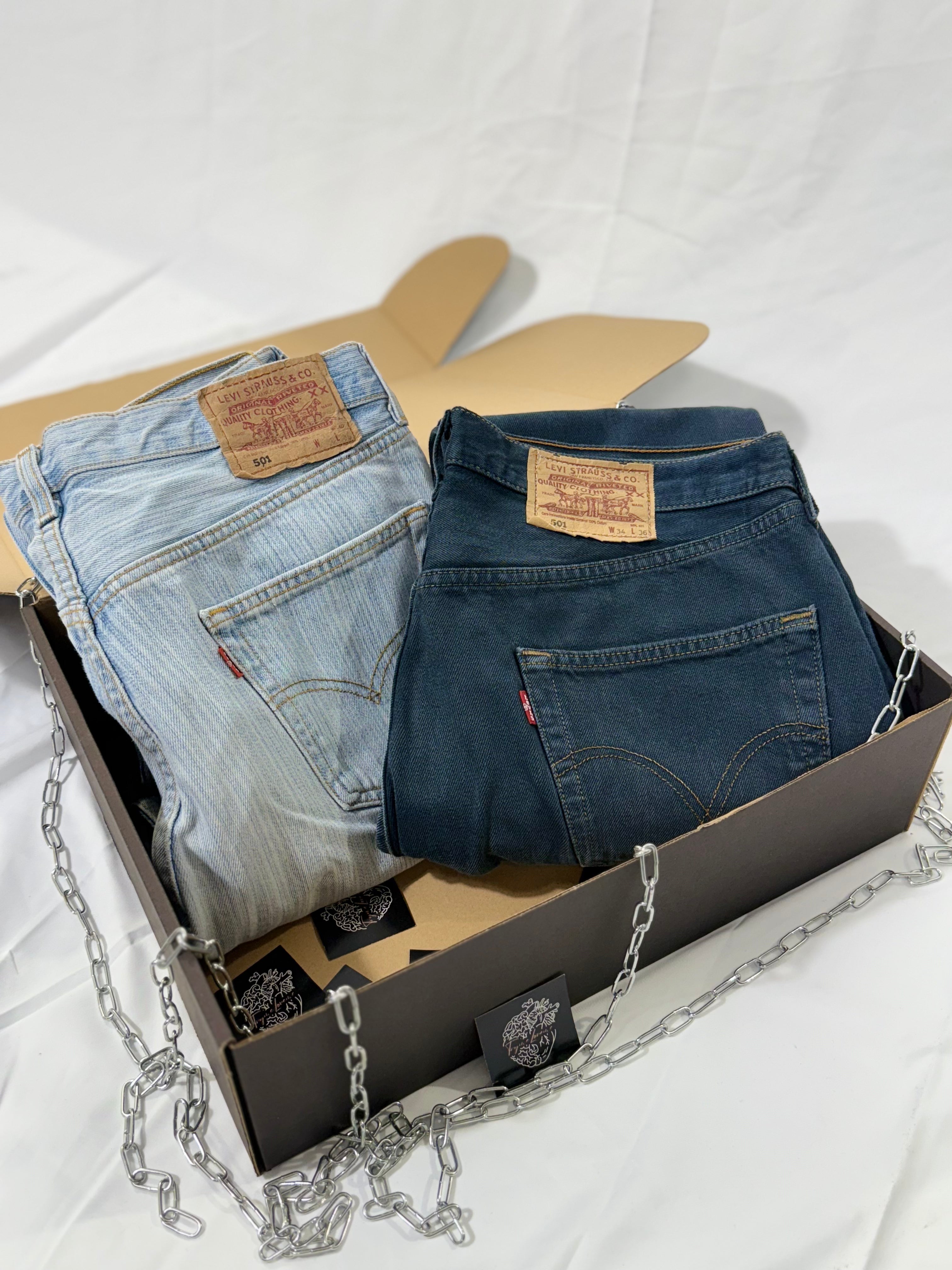 I jeans inclusi sono Levi’s Vintage originali, selezionati in ottimo stato.